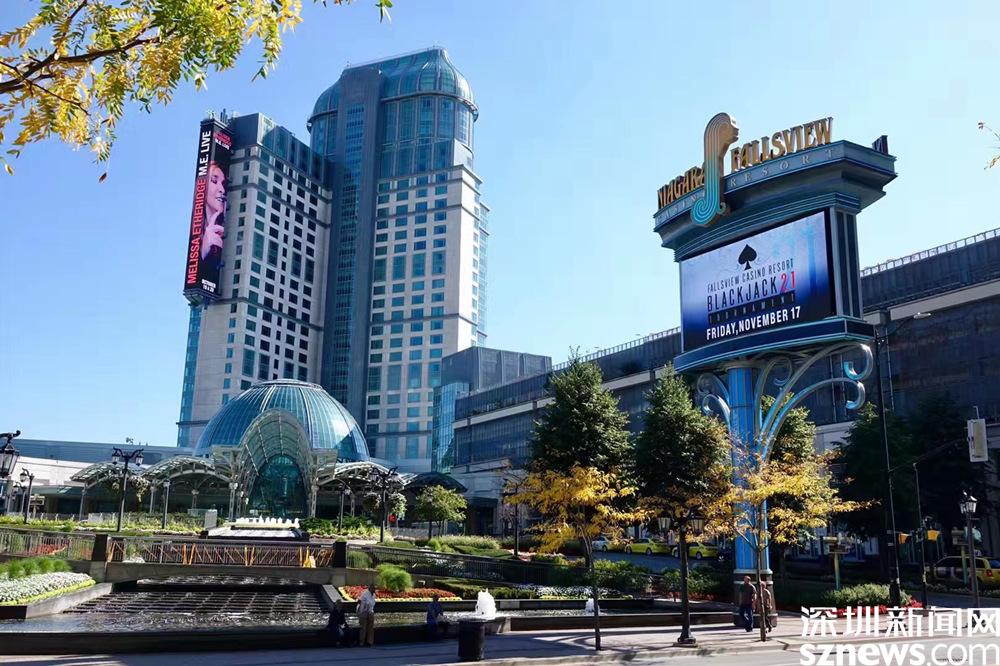 在美國(guó)一側(cè)的尼亞加拉瀑布城鮮有臨河的高樓大廈,最高的建筑是塞內(nèi)卡尼亞加拉大賭場(chǎng)和酒店。李仁奇 攝