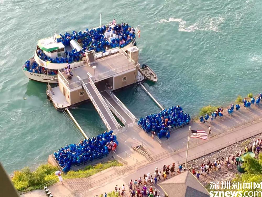 奧尼達(dá)瞭望塔的下面是乘坐“霧中少女號(hào)”游輪的碼頭,加拿大的游輪碼頭與它隔河相望。李仁奇 攝
