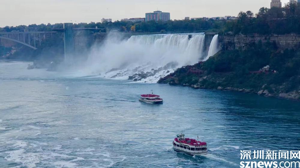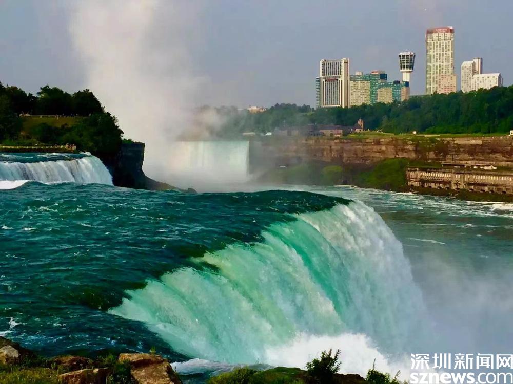 在瀑布兩側(cè),有兩座都叫尼亞加拉瀑布城的姐妹城市,一個(gè)隸屬于加拿大的安大略省,另一個(gè)隸屬于美國(guó)的紐約州,兩城隔河相望。李仁奇 攝