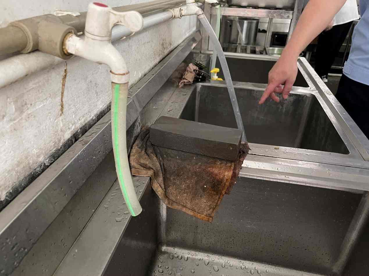 但在檢查中,執(zhí)法人員也發(fā)現(xiàn)了不少的問題。在粗加工區(qū),執(zhí)法人員發(fā)現(xiàn)蔬菜清洗池旁邊有一塊潔凈程度較差的磨刀石,要求食堂負(fù)責(zé)人將其清潔后移放別處,以防止對(duì)食材產(chǎn)生污染。進(jìn)入烹飪區(qū),執(zhí)法人員對(duì)食堂員工進(jìn)行了手部檢查,發(fā)現(xiàn)員工指甲偏長,要求盡快剪除。同時(shí),執(zhí)法人員發(fā)現(xiàn)烹飪區(qū)缺少燈具,光線較為昏暗,若鍋中有異物難以發(fā)現(xiàn),建議食堂負(fù)責(zé)人盡快安裝燈具。而在烹飪區(qū)的地面,執(zhí)法人員在排水渠盡頭發(fā)現(xiàn)了一個(gè)未加遮掩的大洞,執(zhí)法人員表示,這樣的大洞極容易造成老鼠、蟑螂等生物的入侵,要求食堂負(fù)責(zé)人盡快對(duì)此問題進(jìn)行整改。