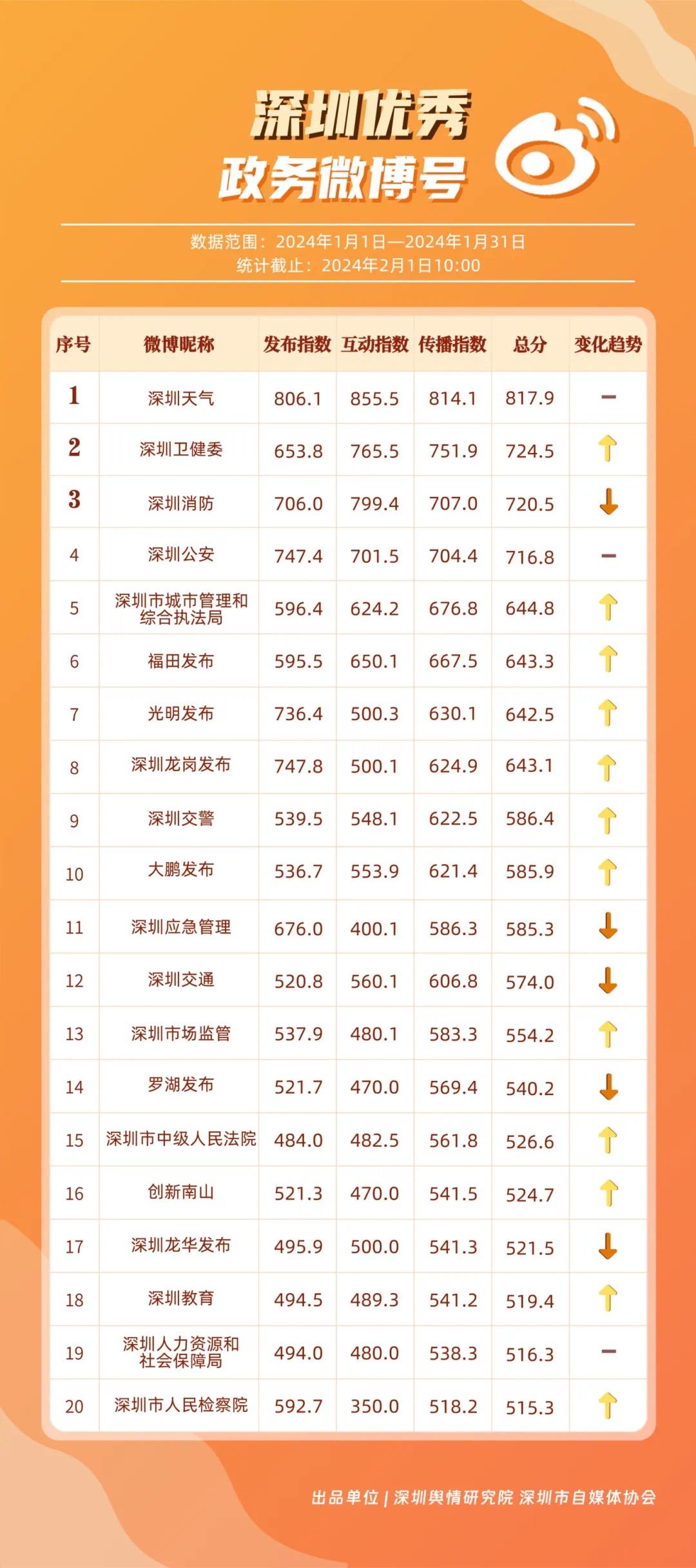 據(jù)悉,《深圳優(yōu)秀政務新媒體矩陣》旨在通過對深圳黨政機關、企事業(yè)單位開設的政務新媒體進行持續(xù)觀察、定期評估,展現(xiàn)政務新媒體的建設管理水平及公眾認可度,同時發(fā)揮好媒體的宣傳監(jiān)督作用。