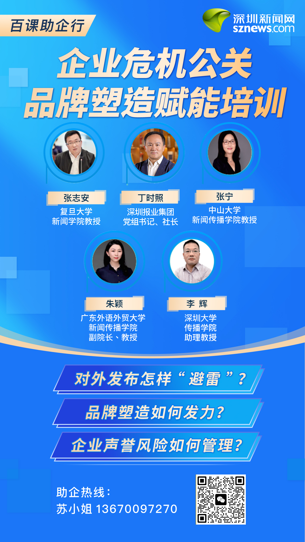 深圳新聞網(wǎng)2023年8月15日訊(記者 丁子怡 實(shí)習(xí)生 曾靜敏)在深圳市委宣傳部的指導(dǎo)下,深圳新聞網(wǎng)聯(lián)合深圳輿情研究院于日前正式啟動(dòng)“百課助企行——企業(yè)危機(jī)公關(guān)和品牌塑造賦能培訓(xùn)”活動(dòng)。