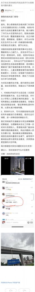 33. 帖文《關于優(yōu)化深圳地鐵3號線龍崗丹竹頭段噪音問題的建議》