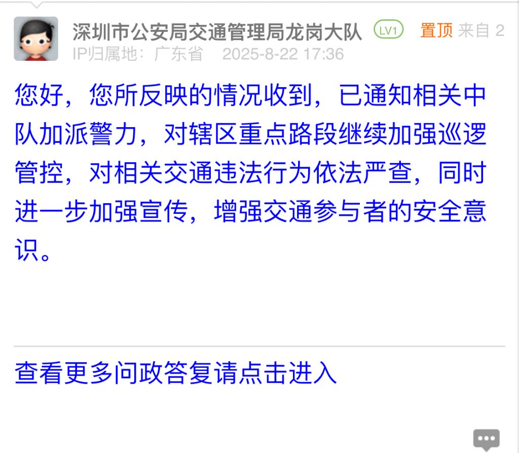據統(tǒng)計,2025年8月18日-2025年8月24日,網友在深圳論壇發(fā)布問政類帖文共40篇,得到相關單位正式回應的帖文數(shù)為40篇,本期簡報回應速度最快的單位:市公安局交通管理局寶安大隊、市公安局交通管理局羅湖大隊、羅湖區(qū)翠竹街道辦事處、市生態(tài)環(huán)境局寶安管理局、龍崗區(qū)城市管理和綜合執(zhí)法局。