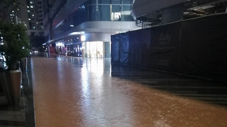 南山南海公園來福士廣場(chǎng)積水,回應(yīng):已清理淤泥堵塞
