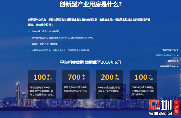 平臺(tái)最大的亮點(diǎn)是匯聚了全市創(chuàng)新型產(chǎn)業(yè)用房資源,是深圳市創(chuàng)新型產(chǎn)業(yè)用房統(tǒng)一的信息發(fā)布和在線申請(qǐng)平臺(tái)。企業(yè)可以在尋找產(chǎn)業(yè)空間時(shí)享受一系列免費(fèi)的服務(wù):平臺(tái)統(tǒng)一受理深圳市企業(yè)的產(chǎn)業(yè)空間需求申報(bào),并為企業(yè)全程免費(fèi)提供需求跟蹤、撮合對(duì)接等服務(wù)。